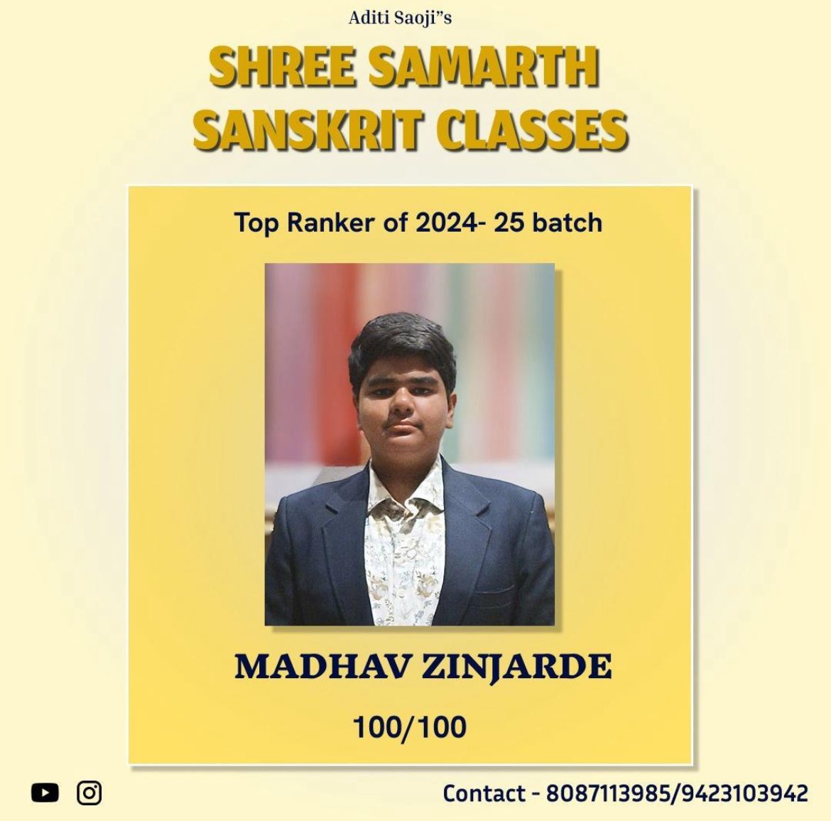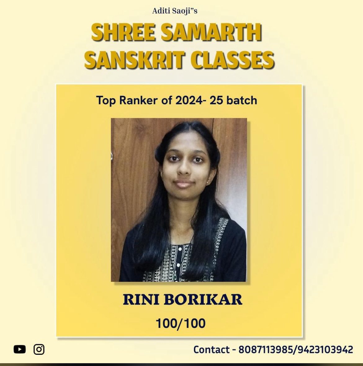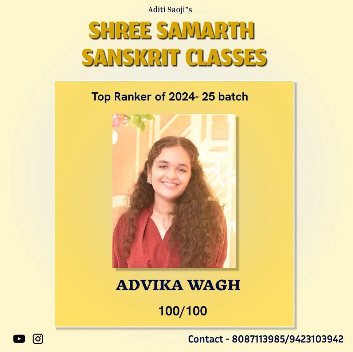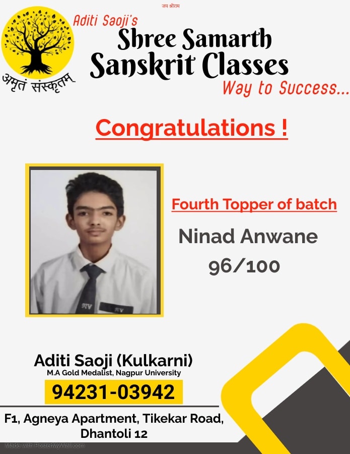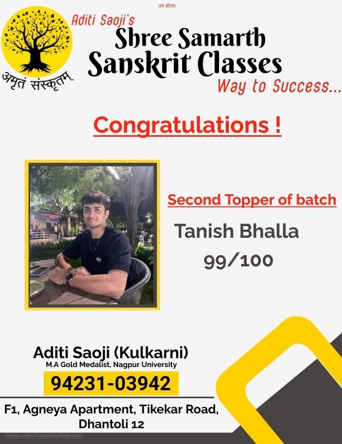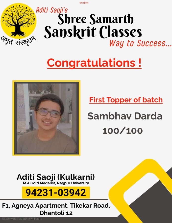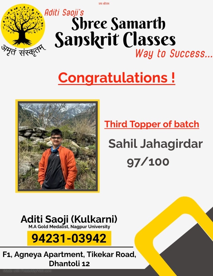 EXCELLENT Based on 103 reviews Posted on Gajanan PathodeTrustindex verifies that the original source of the review is Google. Aditi ma'am is very cooperativePosted on Yogesh NaagpureTrustindex verifies that the original source of the review is Google. My son was studying in the classes and he has scored outstanding marks in the exams. I really advise to join these classes for achievements.Posted on Ashish DigraskarTrustindex verifies that the original source of the review is Google. अदितिजी को संस्कृत मे महारत है। Very good classes for Sanskrit learning for all standards