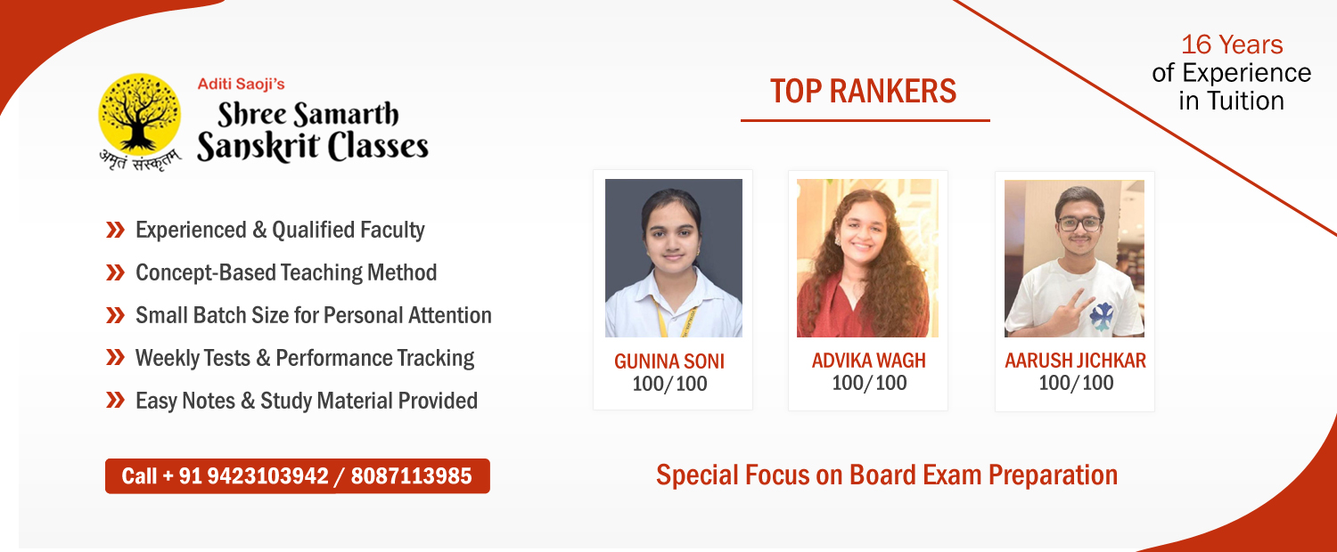 Shree Samarth Sanskrit Academy offers well-structured Sanskrit coaching for Classes 5th to 10th (CBSE Board) & 8th to 10th (State Board), designed to help students build strong fundamentals, score high marks, and develop confidence in the language